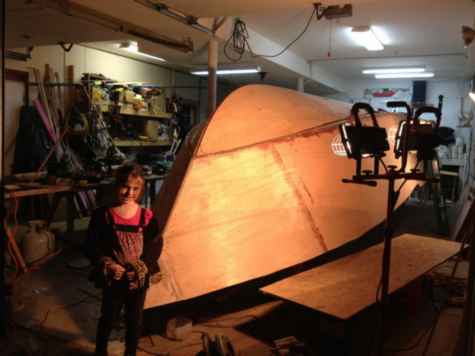 Here are a couple of pics of my Caprice progress. I'm hoping to be ready to flip sometime in April. Thanks to Max's book I'll be powering it with a classic 10 hp '58 Evinrude, and the sails from a Polysails kit. The cabin is a little taller (3" if I remember right) than the plans specify because I couldn't bring myself to cut off the excess plywood. So I'll see how much some extra headroom costs me in windage.