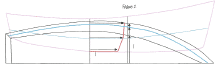 This view also gives us the heights of each frames. But to cut the frames we need the widths also and the flare of the sides. So for that we have to put in the half-breadth view over the profile view. I have put H for the height of Frame 3 and the widths of that frame. You can see the height is taken off the profile, in blue and the width off the half-breadth in black.