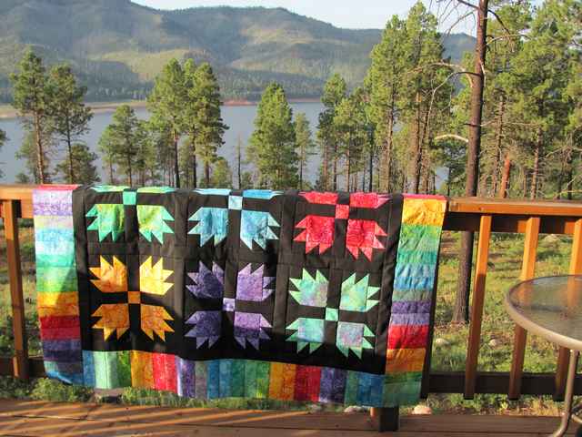 | In July we went back to Vallecito Lake, for our summer vacation. We rented a cabin again. The peace and tranquility there draw us in and we can’t resist. And of course, I love sailing there. We went in June the previous year and the reservoir was full when we got there. This year we went a month later and the water level was down a lot from last year. I understand from talking to some of the locals that the lake didn’t fill up to it’s normal level this year. Much of the islands and shoreline visible this year were under water last year. It rained every afternoon we were there. We sailed in the mornings, took a break for lunch and sailed again. We had a week there, but spent one day in the cabin because it rained all day and took another day to visit Mesa Verde. We had a nice time hiking around at Mesa Verde and looking at the ancient dwellings. It was a great history lesson and we had some fantastic views. There was a full moon while we were at Vallecito. With the balcony of the cabin looking out over the lake, it was magical. After the sun went down we could see the glow of the moon on the water of the lake as well.
