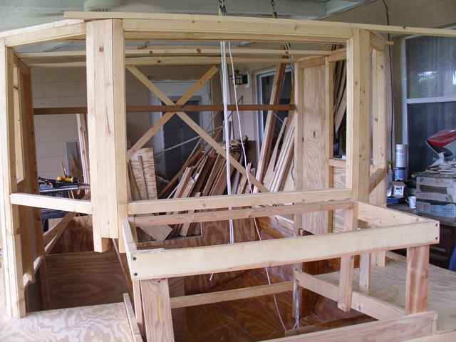 I'm using bead board with a natural stain and water based polyurethane finish. That covers the rear wall and will be applied over the rest of the deck house. The windows are Lexan they have the covers still on to protect the finish.