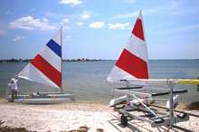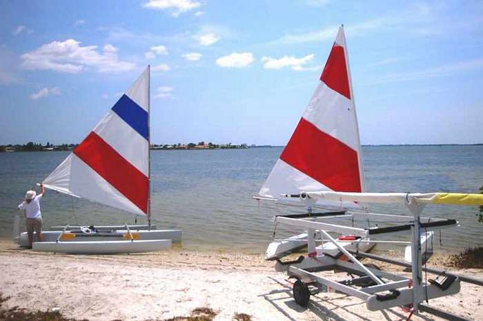 6. They can sail well in extremely shallow water. Mine will sail in just 5 inches, and Laura's in even less! Now, this may not be a big deal where you live. But here on Florida's Sunshine Coast, the bays can get REALLY shallow, especially at low tide. But if I simply pivot up the leeboard(s) and let the rudder kick up, I can take off – even upwind - in as little as 6” of water!