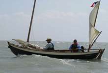 As we entered the land cut, the waves reduced in size and sailing, as well as holding course became easier. Shortly after entering the land cut we saw the “Duck” fleet beached along the eastern side. A few other boats were beached with them. We called out to one of the boats to find out what was going on. The skipper of the boat said it was a lunch break. We found out later that the Ducks were making repairs. A short while after passing the Ducks, we were passed by Matt and Chris in the other Mariner. They had their jib up with their reefed main sail. We were sailing under a reefed main only. My Mariner was fairly new to me and I was still getting used to how she handled. One thing for sure though, she was a lot more stable than my Day Sailer was. The heavy centerboard and ballast really was noticeable.